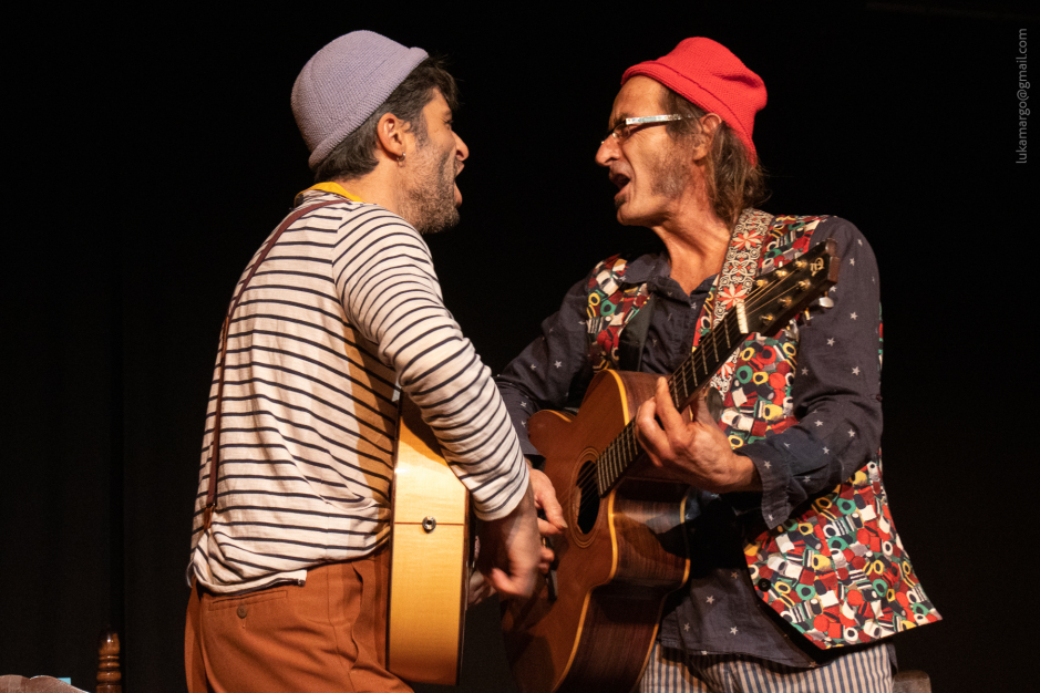Amb l’Eduard Canimas viatgem entre teatre, música i improvisació, donant vida a dos personatges oposats: un que s’encongeix sota el judici i un altre que s’amaga darrere una seguretat de cartró pedra.